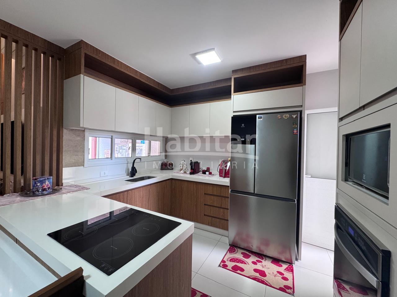 Semi mobiliada ficam móveis sob medida, cooktop e forno embutido